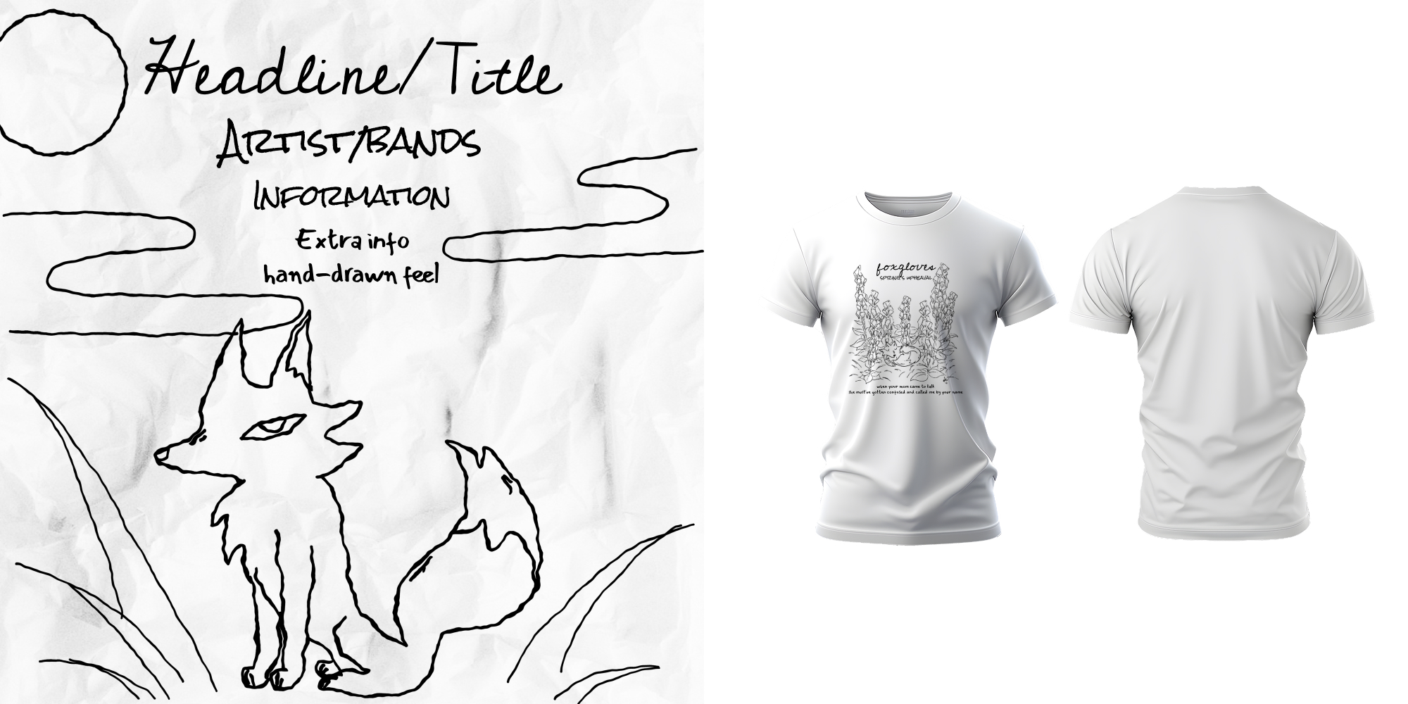 font and dotted black animal graphics. The shirt is similar, sporting a foxglove on the